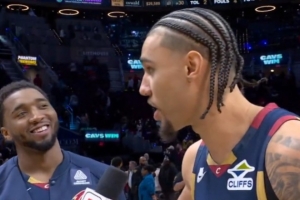 體育資訊1月29日訊 NBA常規(guī)賽,騎士主場129-99大勝湖人,賽后米切爾接受場邊采訪。