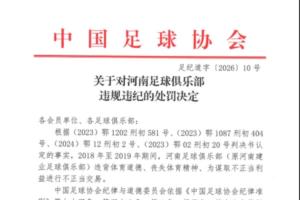 關于對河南足球俱樂部違規違紀的處罰決定