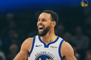 賽后勇士發布贏球海報,封面為庫里大笑瞬間。