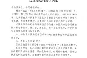 足協公布處罰公告,北京國安被扣5分+罰款人民幣40萬元。隨后北京國安官方回應:“人在做,天在看!頭頂三尺有神明!”