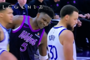 體育資訊1月29日訊 在此前森林狼對陣勇士的比賽中,愛德華茲在場上和庫里交流,當時美媒給出了解讀為,愛德華茲打趣庫里,讓他申請交易,并與自己和戈貝爾組隊。