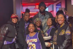 賽后,詹姆斯的一些家人們身穿他的球衣現身支援,詹姆斯送上合影和簽名。