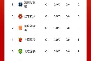 新賽季中超積分榜如上圖,還未比賽,新賽季中超兩支升班馬遼寧鐵人與重慶銅梁龍,分別暫列第6和第7。兩隊領先降級區高達10分。