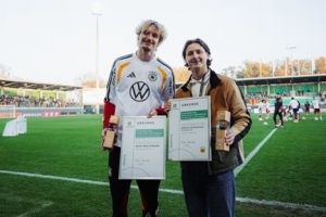 當地時間本周一,德國足協在官網發布公告,宣布德國國腳沃爾特馬德獲得2024-25賽季公平競賽獎。同時獲獎的還有SG Markgr?flerland青年隊主帥埃爾溫-費塔霍維奇。在周一德國國家隊在沃爾夫斯堡進行公開訓練時,德國足協為沃爾特馬德和埃爾溫-費塔霍維奇頒獎。