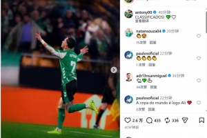 安東尼賽后更新社媒動態(tài),曬出慶祝進(jìn)球的照片,配文:“晉級!”