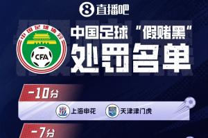 體育資訊01月30日訊 昨日上午,足球行業(yè)“假賭黑”專項整治行動的相關(guān)會議在北京召開。中午12點左右,足協(xié)公布處罰,13家職業(yè)俱樂部被罰分,其中中超9隊,申花、津門虎被罰10分。