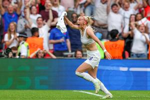 這位英格蘭前鋒與耐克合作已有數年,她在2022年歐洲杯奪冠后標志性的慶祝動作,將球衣舉過頭頂、露出白色耐克運動內衣,成為了該品牌的一個經典形象。