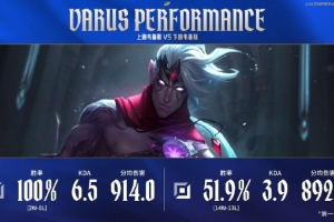 賽事數據:LPL第一賽段至今上單維魯斯兩場100%勝率 下路51.9%
