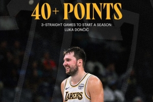 體育資訊11月2日訊 湖人官方曬出東契奇40+得分海報,并配文寫道:“開季連續3場拿下40+分的球員:盧卡-東契奇、威爾特-張伯倫。”