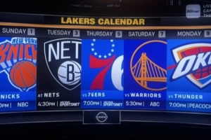 過去四場比賽,湖人取得3勝1負的出色戰績,接下來5場,他們的對手分別是:尼克斯、籃網、76人、勇士、雷霆。