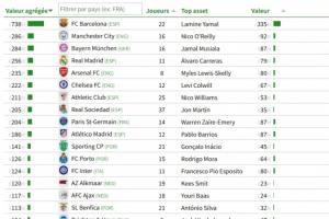 體育資訊01月31日訊 CIES足球天文臺更新了最新的球隊青訓球員身價榜,目前巴薩以7.38億歐的球員總身價高居榜首,曼城、拜仁分列二三。