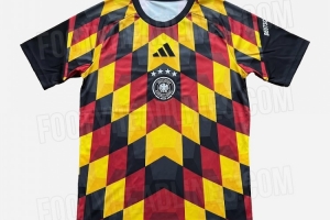 體育資訊1月31日訊 據著名的足球裝備網站Footy Headlines報道,阿迪達斯為德國國家隊打造的2026年世界杯賽前訓練衫諜照已經流出。