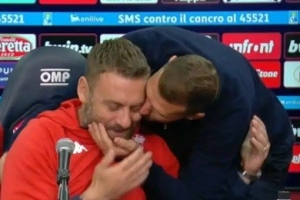 體育資訊11月11日訊 在上輪意甲聯(lián)賽的賽后新聞發(fā)布會上,哲科“強(qiáng)吻”昔日隊(duì)友德羅西。