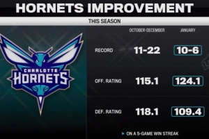 1月:10勝6負,進攻效率124.1,防守效率109.4。