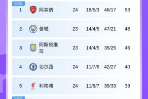 積分榜上,阿森納先賽7分領跑,切爾西聯賽三連勝后暫升第4,利物浦終結5輪不勝暫升第5。