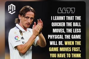 莫德里奇接受采訪時說道:“我意識到,球移動得越快,比賽的身體對抗就越少。當(dāng)比賽節(jié)奏快時,你必須快速思考,而當(dāng)比賽節(jié)奏慢下來時,就會給身體素質(zhì)好的球員創(chuàng)造機會。”