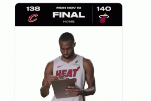 體育資訊11月11日訊 NBA常規賽,熱火140-138加時險勝騎士。