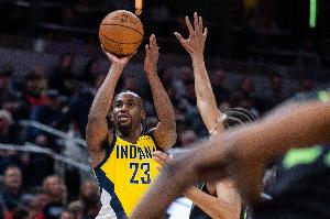 體育資訊2月1日訊 NBA常規賽,步行者半場80-73領先老鷹。