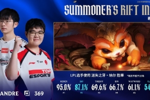 在歷史LPL選手使用納爾(場次不低于20場)勝率排行榜中,369 位居第二,F(xiàn)landre位居第六;