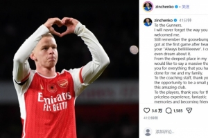 體育資訊2月2日訊 阿森納后衛津琴科轉會加盟阿賈克斯,烏克蘭人在社交媒體上對老東家表示了感謝。