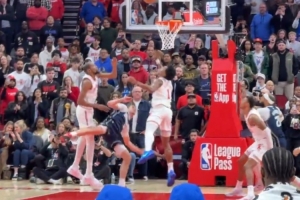 張牙舞爪!文班送空接被破壞 自己搶回來單臂暴扣