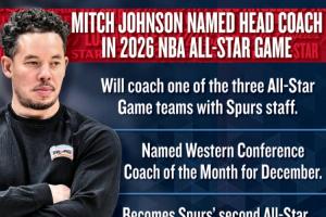 米奇今夏剛剛被馬刺轉(zhuǎn)為正式主帥,這是米奇執(zhí)教生涯首次擔(dān)任全明星主帥,他也成為馬刺隊(duì)史第二位全明星主帥。