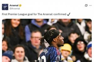 阿森納官方向馬杜埃凱祝賀道:“代表阿森納的首粒英超進(jìn)球:已確認(rèn)??”。