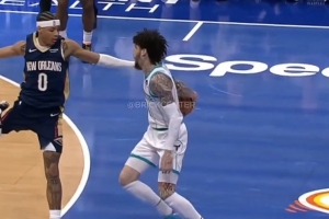 GIF-費爾斯防守拉梅洛·鮑爾被點飛 結結實實給了后者一個巴掌