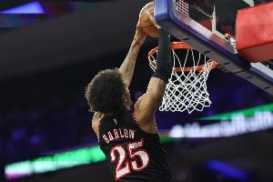 首節(jié)比拼,巴洛助76人占據(jù)主動(dòng)。他打滿12分鐘,7投4中,罰球3中3,得11分7板1助1斷1蓋帽,前場(chǎng)籃板有4個(gè)。