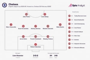 體育資訊2月4日訊 聯賽杯半決賽次回合比賽,切爾西前往客場挑戰阿森納。賽前首發陣容顯示,切爾西本場比賽采用了三后衛陣型。
