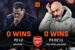 根據統計,阿森納對切爾西的各賽事不敗已經來到10場,并且,切爾西期間已經經歷了5名主教練。