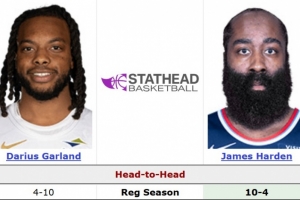 據統計,哈登生涯面對加蘭10勝4負,場均24.1分5.4籃板9.6助攻1.3搶斷,加蘭場均19.8分3.5籃板7.5助攻1.6搶斷。