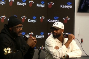 體育資訊2月4日訊 奧尼爾和韋德出席熱火奪冠20周年紀(jì)念活動新聞發(fā)布會。