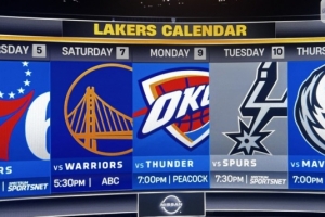 湖人媒體@PurpGolded曬出了湖人接下來5連主場賽程,他們將先后對陣76人、勇士、雷霆、馬刺、獨行俠。