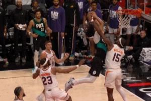 GIF-賽季最炸裂扣籃!夏普超遠滑翔拉桿,隔著2米16馬威折疊暴扣!