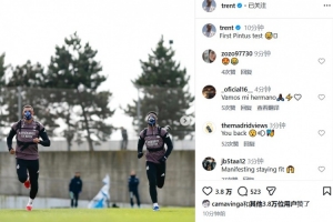 皇馬后衛阿諾德更新社媒,曬出訓練圖:首次感受平圖斯的訓練強度??。