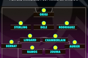 附太陽報列自由球員最佳陣:羅梅羅;貝爾納特、拉莫斯、祖馬、奧利耶;林加德、張伯倫、斯特林、阿里、J羅;奧里吉