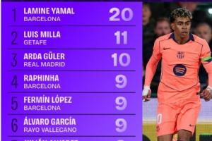 體育資訊02月05日訊 本賽季西甲截止至今,據Squawka統計,亞馬爾在多項數據霸榜。