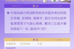 體育資訊2月5日訊 明天的米蘭冬奧會,中國體育代表團首秀即將上演。