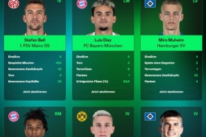 斯蒂芬·貝爾(中后衛,美因茨):出場5次,出場時間434分鐘,贏得42次對抗,打進2球,贏得33次頭球爭頂