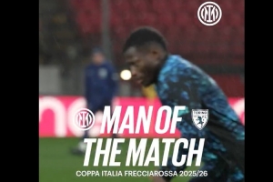 體育資訊2月6日訊 意杯1/4決賽,國米2-1擊敗都靈,據賽后國米官方消息,伊夏卡·卡瑪特當選此役隊內最佳球員。