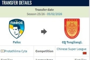 在重慶銅梁龍官宣塞浦路斯球隊帕福斯邊鋒迪馬塔租借加盟后,德轉(zhuǎn)網(wǎng)站顯示他的租借費為250萬歐。