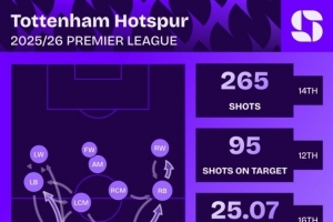 據(jù)Squawka統(tǒng)計(jì),熱刺本賽季英超預(yù)期進(jìn)球僅為25.07粒,但打進(jìn)35球,超出預(yù)期進(jìn)球9.93粒,熱刺是本賽季英超實(shí)際進(jìn)球超出預(yù)期進(jìn)球最多的球隊(duì)。
