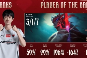 體育資訊2月6日訊 Shanks永恩打出3/1/7戰績,斬獲AL對陣BLG第二局MVP。