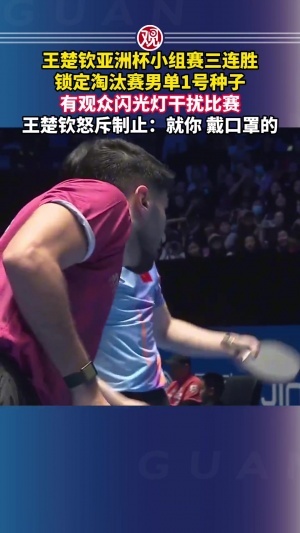 在本場比賽過程中,有觀眾閃光燈干擾比賽,王楚欽怒斥道:“你,就你,戴口罩的。”