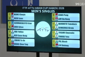 體育資訊2月6日訊 海口亞洲杯男單16強對陣出爐,王楚欽vs郭勇,林詩棟vs阿卡什·帕爾。