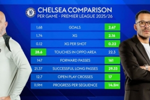 體育資訊2月7日訊 天空體育統計了切爾西上任主帥馬雷斯卡、現任主帥羅塞尼爾帶隊的數據,并做出對比。