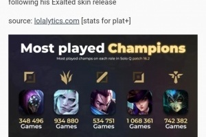 體育資訊2月7日訊 近日,外媒統(tǒng)計稱破敗王佛耶戈皮膚推出后,外服登場率從20漲到第二,僅次于凱特琳!
