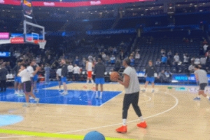 體育資訊11月12日訊 杰倫·威廉姆斯在今天主場對陣勇士賽前進行投籃訓練,他那只正在恢復中的右手腕仍然纏著護具。