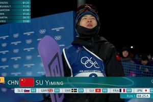 蘇翊鳴第一跳1980獲得88.25分,暫排第二。